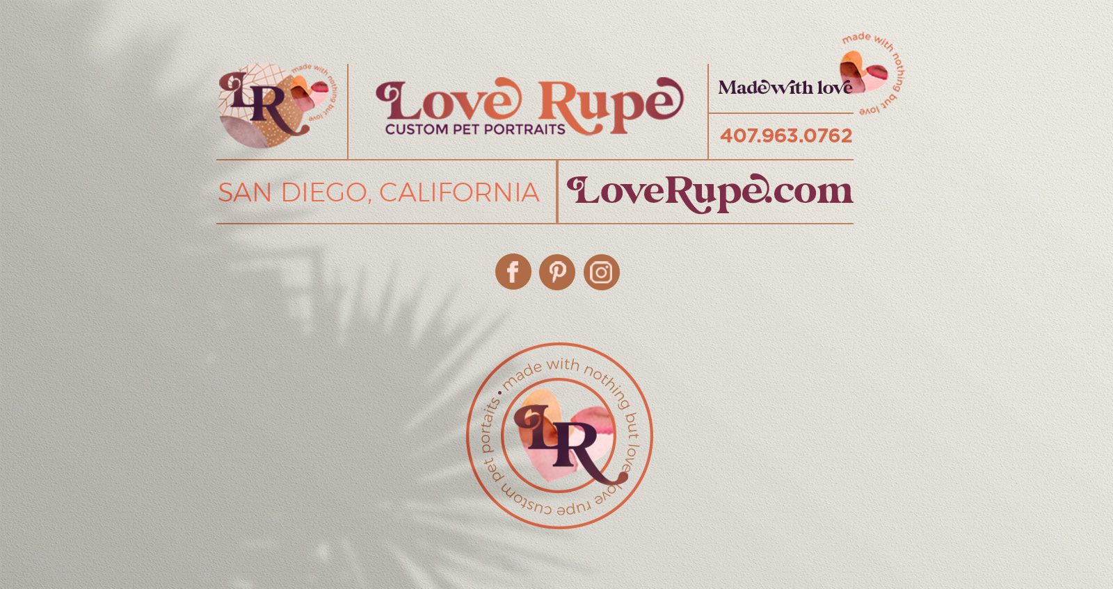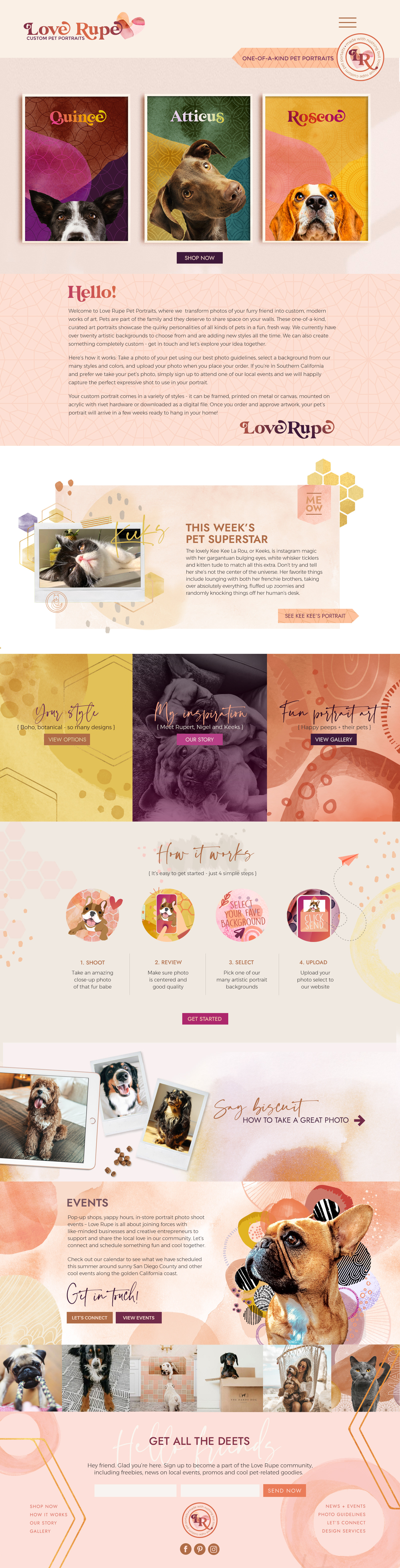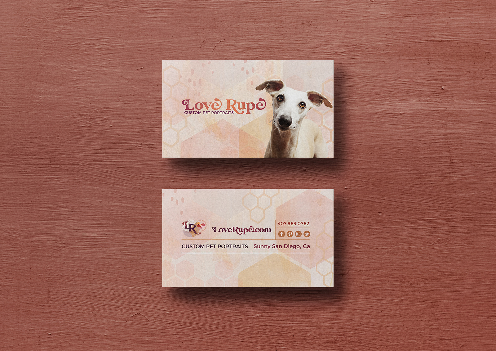 Love Rupe Custom Pet Portraits is a personal creative endeavor based on my love of creative expression and animals. In addition to creating original portraits using a library of background styles and art elements I created, I also designed the brand identity, website, print collateral and social materials. This is currently in production.